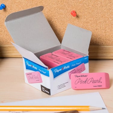 Erasers, correction tape, correction fluid, eraser caps, refill tips